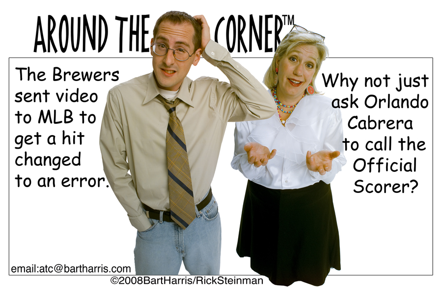 Surf the pictures by clicking Next and Previous page links. Move the mouse over the thumbnails to see a large version of the picture. Watch for new panels every few days. When a noteworthy sports moment occurs, or another overpaid, undereducated sports personality spews a gem, one of Around The Corner's characters will have something to say.