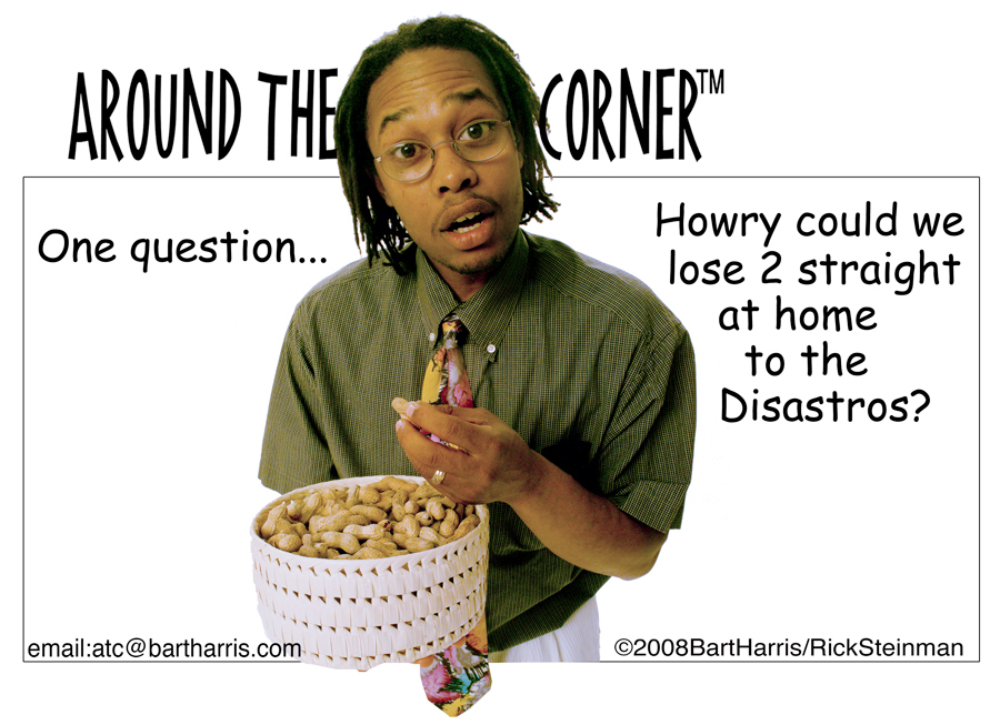 Surf the pictures by clicking Next and Previous page links. Move the mouse over the thumbnails to see a large version of the picture. Watch for new panels every few days. When a noteworthy sports moment occurs, or another overpaid, undereducated sports personality spews a gem, one of Around The Corner's characters will have something to say.
