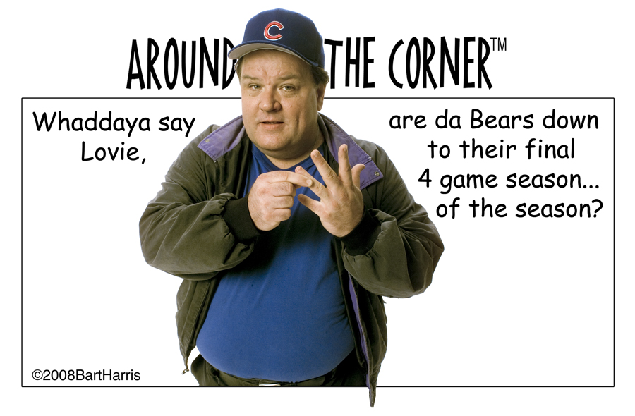 Surf the pictures by clicking Next and Previous page links. Move the mouse over the thumbnails to see a large version of the picture. Watch for new panels every few days. When a noteworthy sports moment occurs, or another overpaid, undereducated sports personality spews a gem, one of Around The Corner's characters will have something to say.