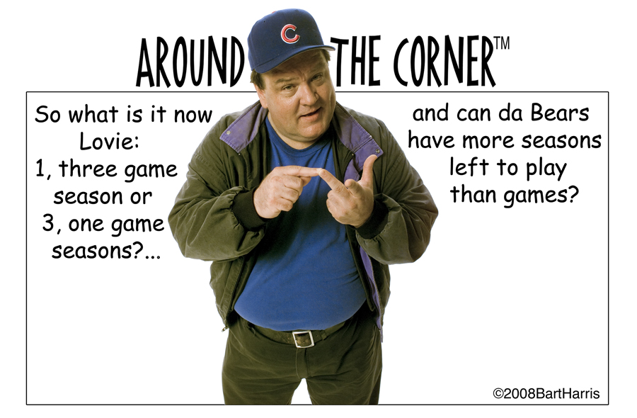 Surf the pictures by clicking Next and Previous page links. Move the mouse over the thumbnails to see a large version of the picture. Watch for new panels every few days. When a noteworthy sports moment occurs, or another overpaid, undereducated sports personality spews a gem, one of Around The Corner's characters will have something to say.