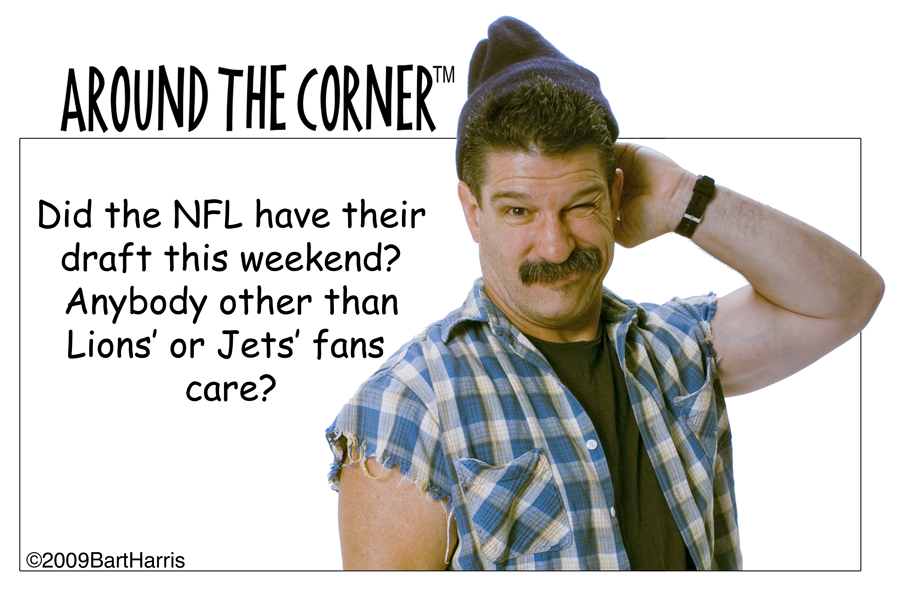 Surf the pictures by clicking Next and Previous page links. Move the mouse over the thumbnails to see a large version of the picture. Watch for new panels every few days. When a noteworthy sports moment occurs, or another overpaid, undereducated sports personality spews a gem, one of Around The Corner's characters will have something to say.
