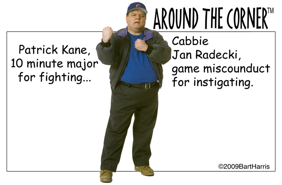 Surf the pictures by clicking Next and Previous page links. Move the mouse over the thumbnails to see a large version of the picture. Watch for new panels every few days. When a noteworthy sports moment occurs, or another overpaid, undereducated sports personality spews a gem, one of Around The Corner's characters will have something to say.