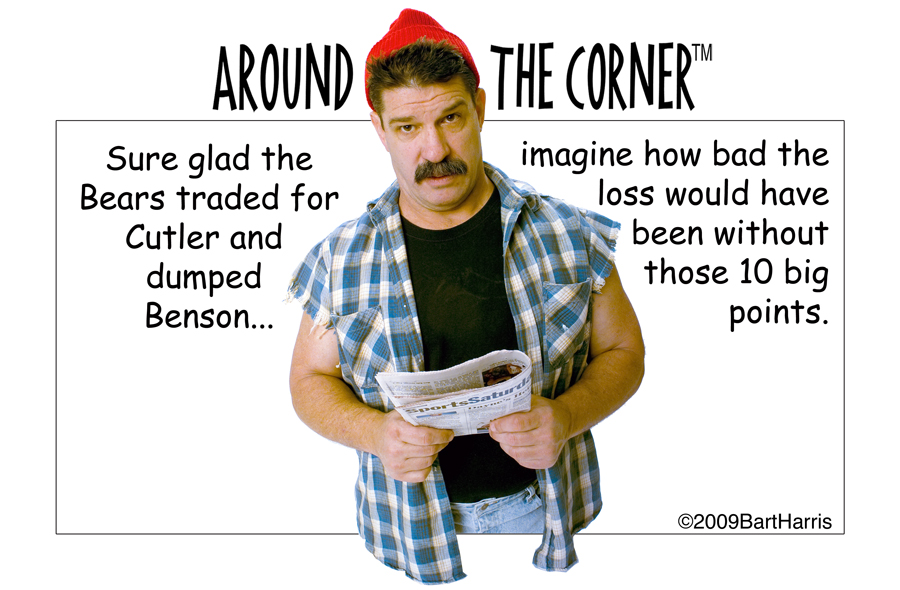 Surf the pictures by clicking Next and Previous page links. Move the mouse over the thumbnails to see a large version of the picture. Watch for new panels every few days. When a noteworthy sports moment occurs, or another overpaid, undereducated sports personality spews a gem, one of Around The Corner's characters will have something to say.